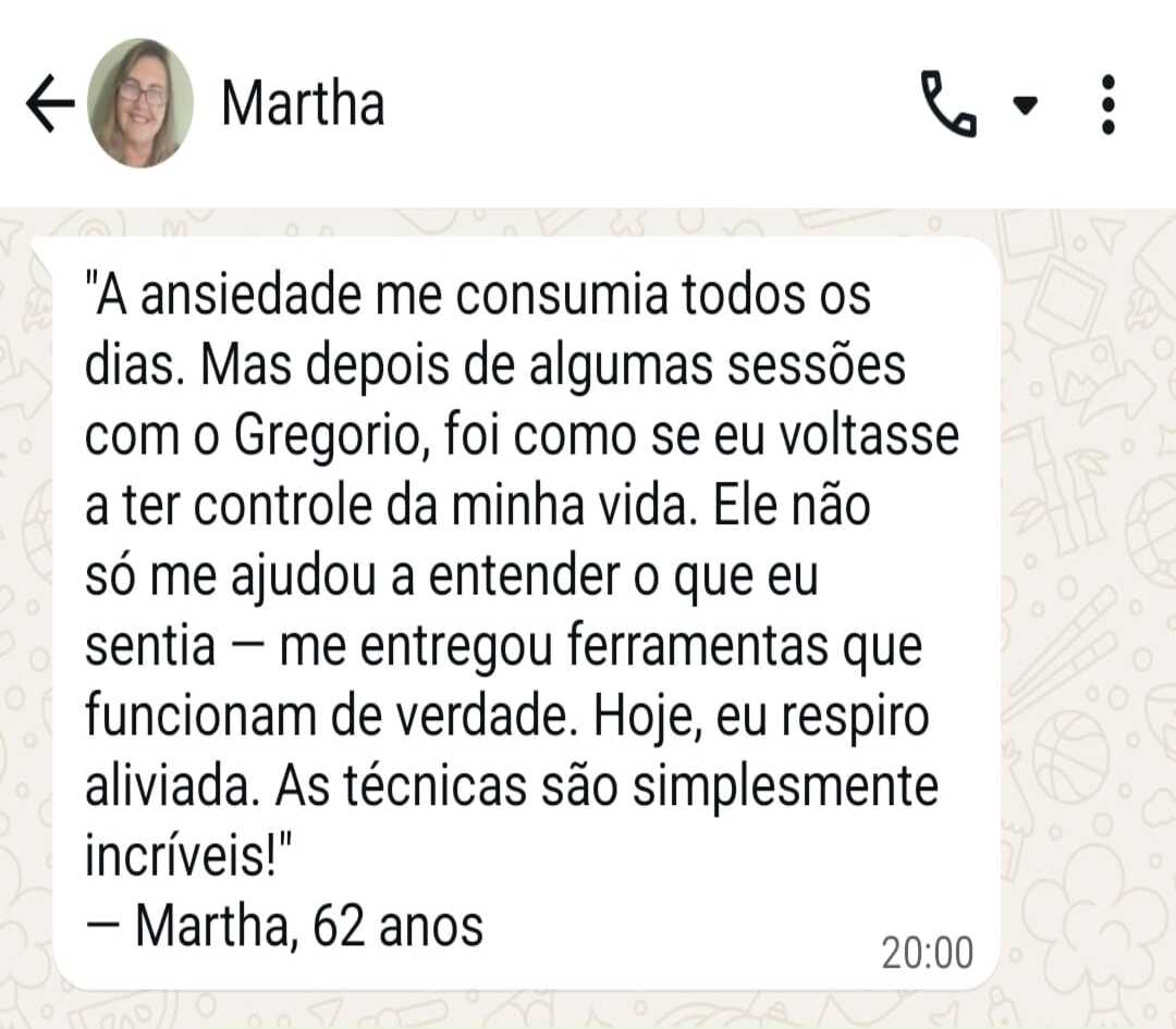 Sou Gregorio Vasconcelos, graduado em Ciências Biológicas há 36 anos e formado em Hipnoterapia pela renomada Faculdade Brasileira de Hipnose a Unihipnose, reconhecida no Brasil e no exterior. Mas mais importante que títulos, é minha experiência real em transformar vidas.